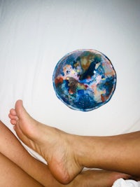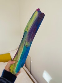 A summer holiday where I had a scooter accident and couldn’t go swimming. Me and Greta collected pieces of wood and painted them. It became a holiday tradition.