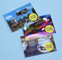 A series of postcards for store store. The images were created in a workshop with students using Machine learning, describing worlds they imagined, postcards from places of fantasy. This was before chatGPT and DALL.E