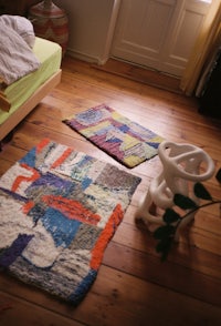 I got a tufting gun from my friends as a birthday present, it was the best present. I spent the winter making carpets. I made them in my bedroom. It left the memory of threads on the floor and spitting out pieces of wool. It’s better to have a different space.